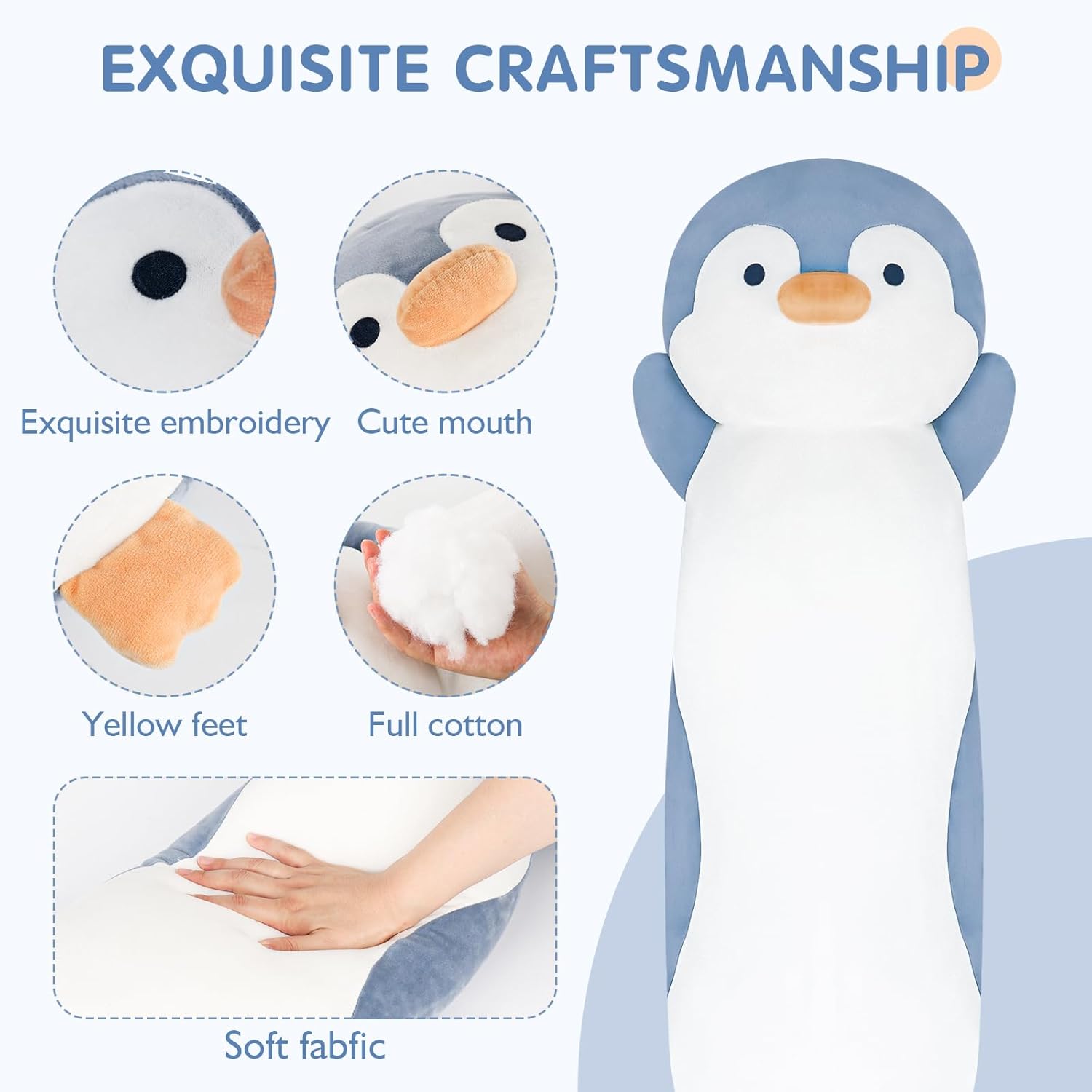 36″ Penguin Stuffed Animal, Soft Jumbo Long Cuddle Pillow, Cute Blue Penguin Plush Body Pillow Plushies Toy Gift for Kids, Boy and Girls Birthday, Easter