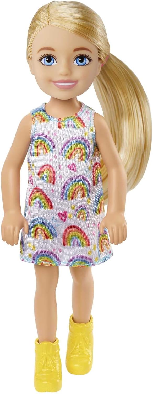 (Blonde) Wearing Rainbow-Print Dress and Yellow Shoes, Toy for Kids Ages 3 Years Old & Up