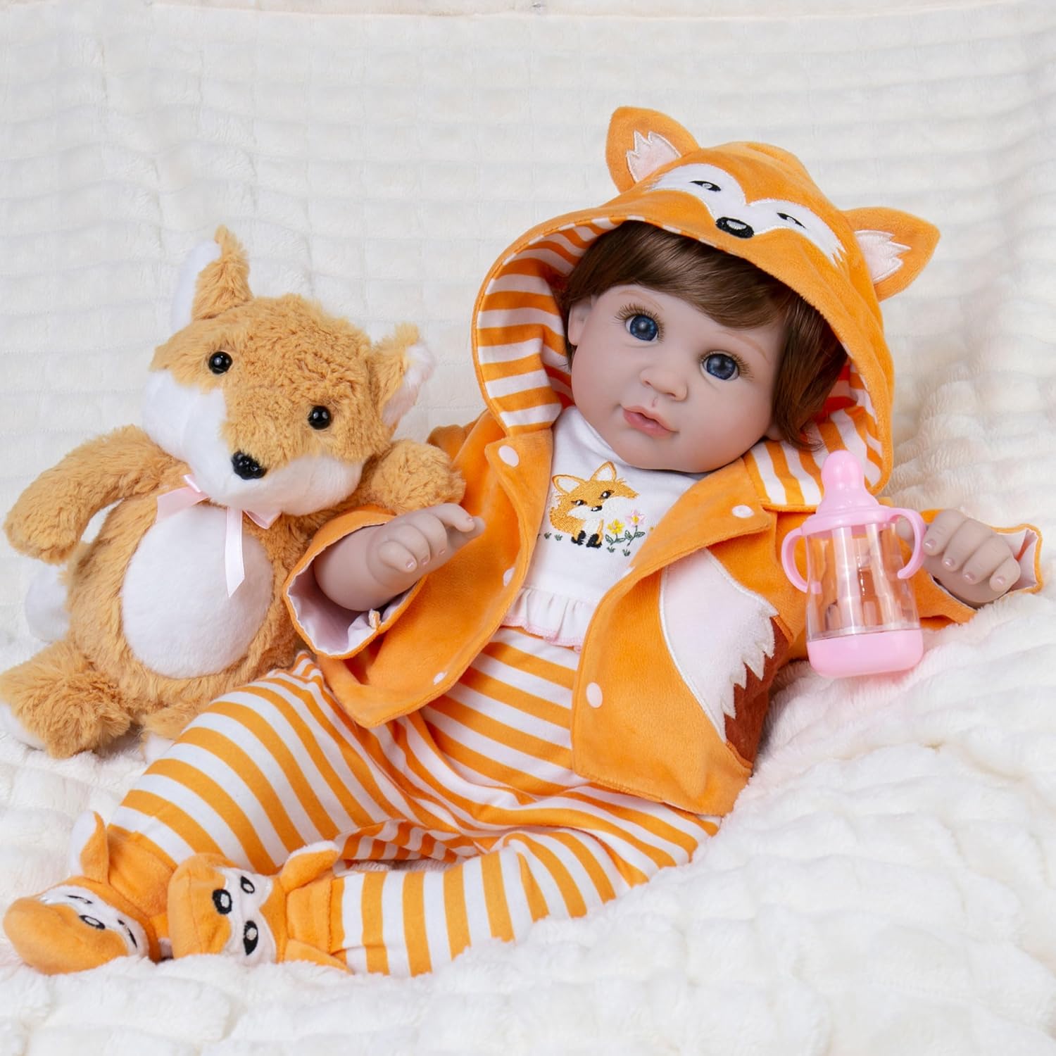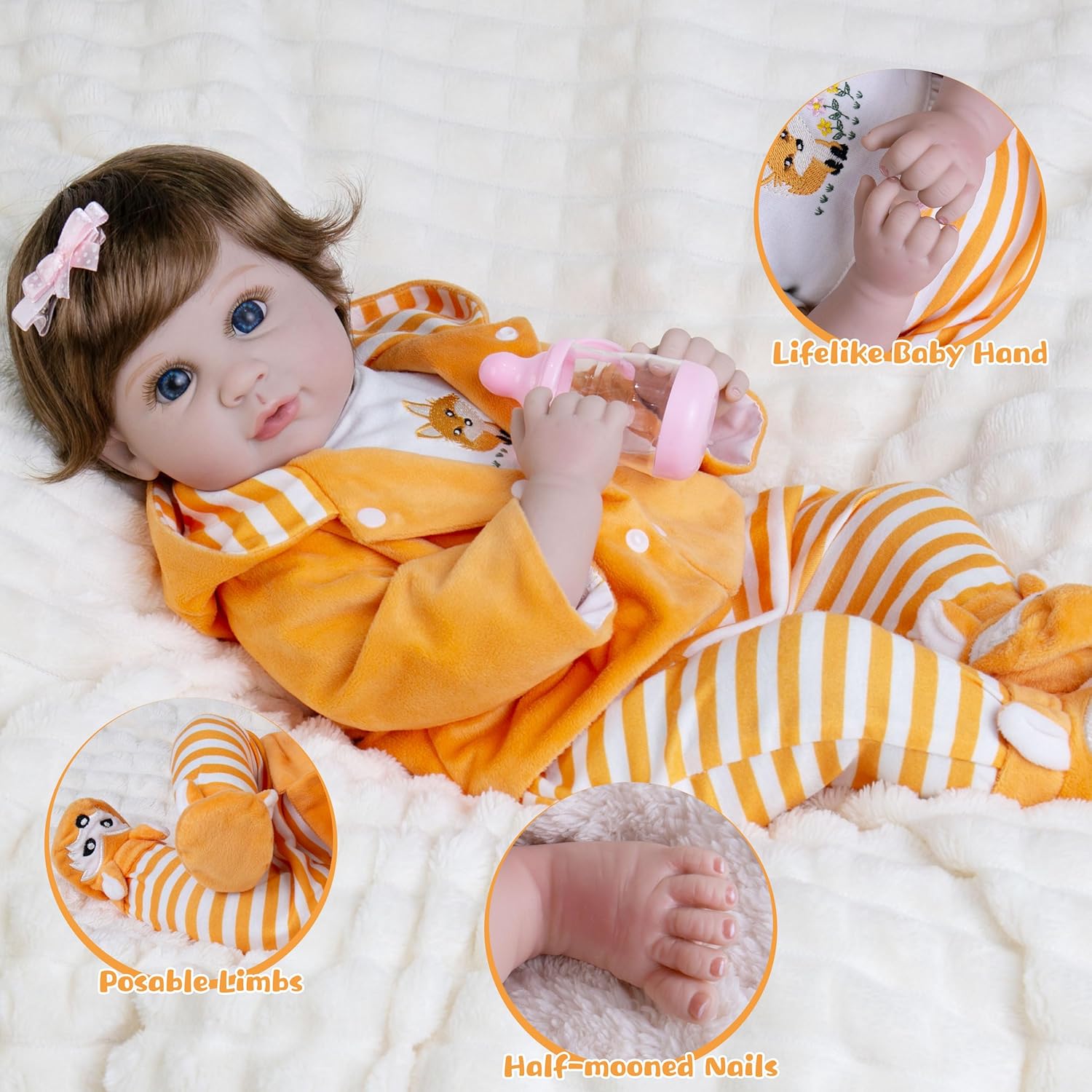 Realistic Baby Dolls 22-Inch Lifelike Baby Dolls Soft Cloth Body Lovely Real Life Reborn Baby Dolls with Clothes and Toy Accessories Birthday Gift Set for Kids 3+