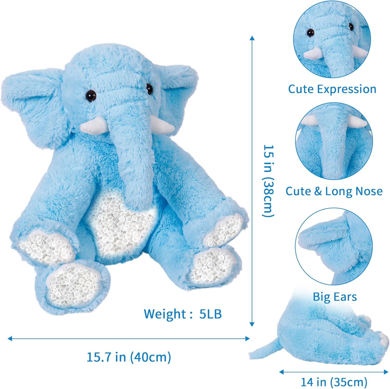 Weighted Elephant Stuffed Animals, 5Lb Weighted Plush Giant 16in Elephant Throw Pillow Plushie for Boys, and Girls Christmas (Blue)